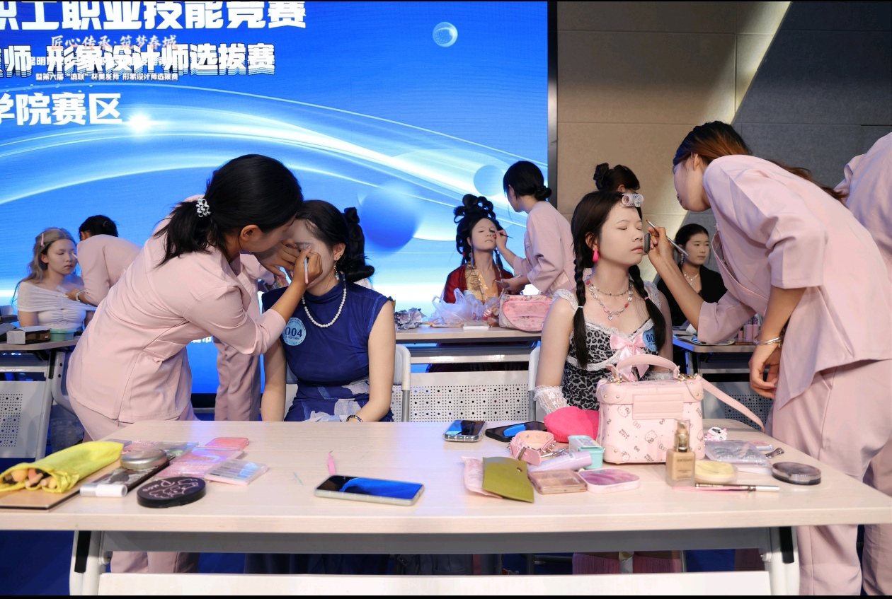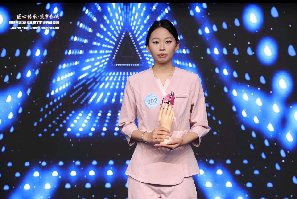 9月30日,在超现代大健康产业学院的支持下,昆明市2025年职工职业技能竞赛暨第六届 “滇联杯” 美甲师形象设计师选拔赛在云南城市建设职业学院举行。此次竞赛是以“匠心传承 筑梦春城”为主题,面向全市美容美发美甲、化妆形象设计工作从业人员,高职院校学生开展美容师和形象设计师2大赛道的职业技能竞赛。