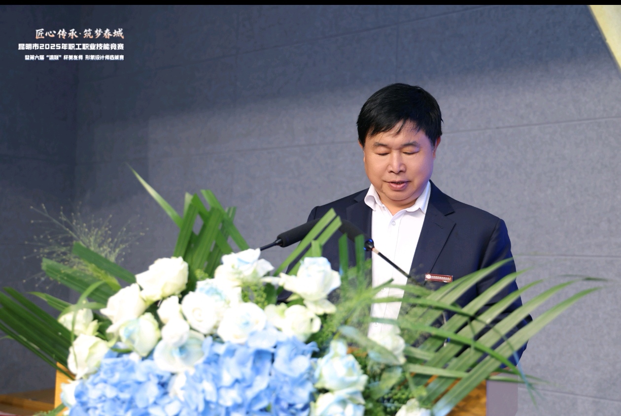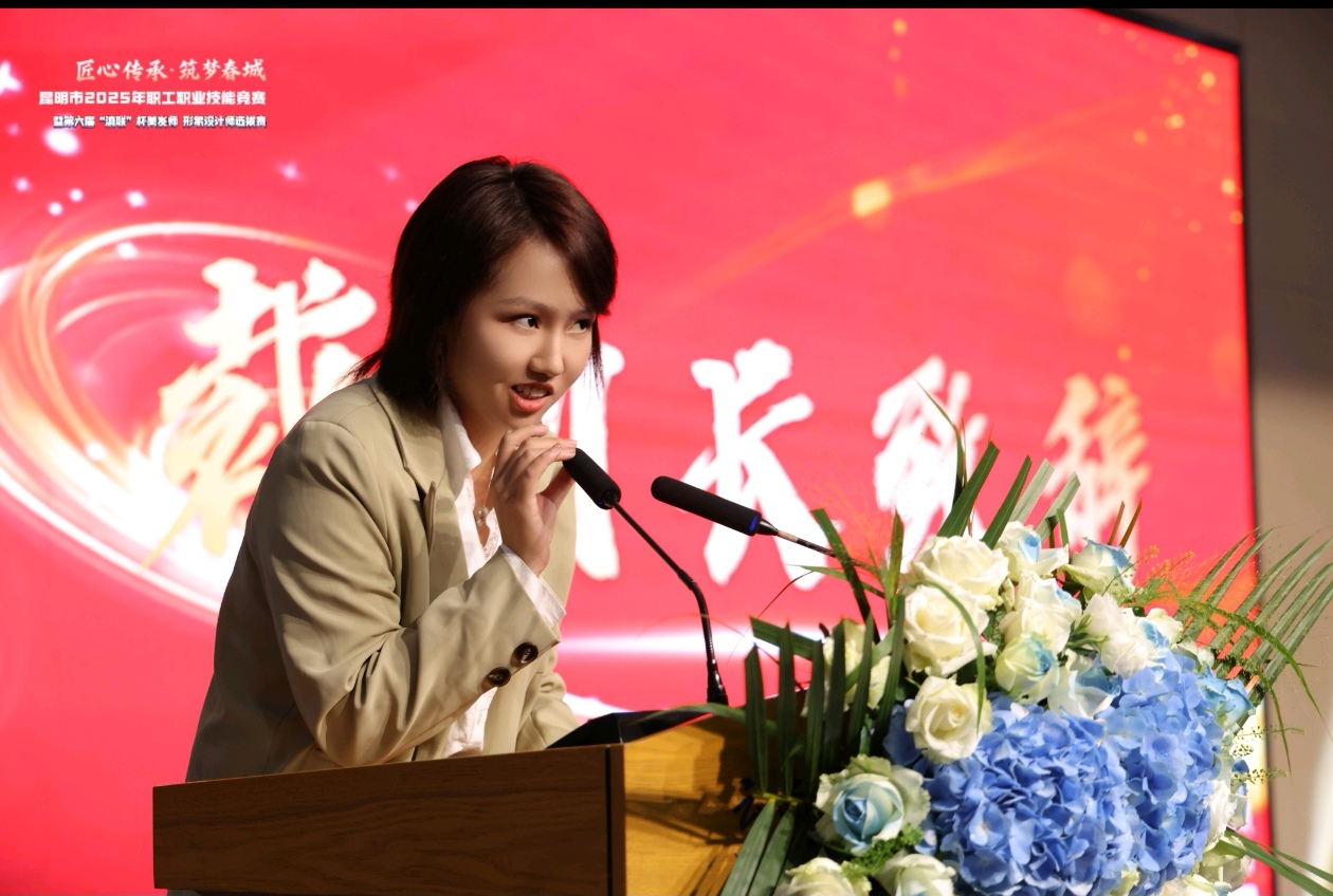开幕式上,云南城市建设职业学院校长代表学校师生,向莅临现场的各位领导、专家、评委致以热烈欢迎,向踊跃参赛的选手们致以诚挚问候,向为赛事筹备倾注心力的昆明市滇联美容美发化妆品行业协会及各支持单位,致以最衷心的感谢。校长指出,技能是立业之基,人才是兴城之本。作为深耕职业教育的院校,云南城市建设职业学院始终牢记“为党育人、为国育才”使命,紧扣区域产业需求推进教育改革。在医学美容技术专业建设中,学校坚持“产教融合、校企合作”,构建“岗课赛证”育人体系。希望我校师生认真观摩学习,从选手们的精湛技艺中汲取力量,树立“技能成才、技能报国”的志向。