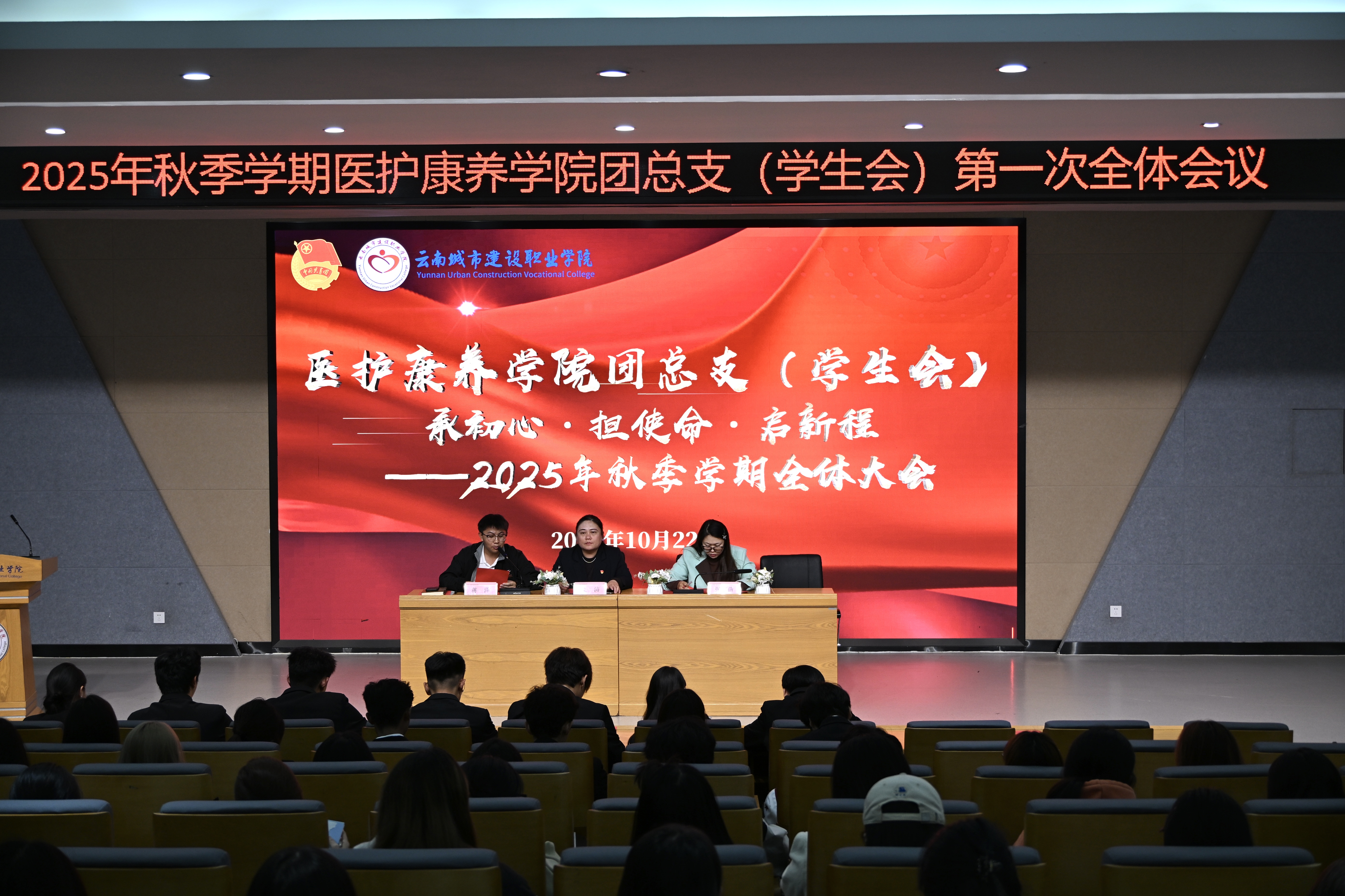 为深入学习习近平总书记关于青年工作的重要论述,持续加强校(院)级团学组织队伍建设,提升工作能力与服务水平,医护康养学院团总支(学生会)承初心·担使命·启新程—2025年秋季学期全体大会在115报告厅召开。学院领导、学生主管以及医护康养学院团总支(学生会)全体成员参加了此次会议。